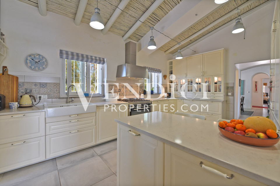 Throughout the home, high feature ceilings with traditional painted beam and cane detailing enhance the sense of character. The interiors are light with calm neutral tones creating an atmosphere of understated elegance.
