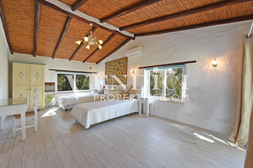 The left wing of the property hosts four generously proportioned en-suite bedrooms. The master suite enjoys direct access via patio doors to the terrace and pool area. All bedrooms include built-in wardrobes and wooden flooring, while the main living areas are finished in quality tiling. A guest cloakroom and additional storage complete the accommodation.
